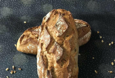 Baguette tradition, baguette ou pain maïs, pain complet, pain de mie...tout est fait maison ! Gage de la qualité de nos produits, nous travaillons en partenariat avec le meunier local.